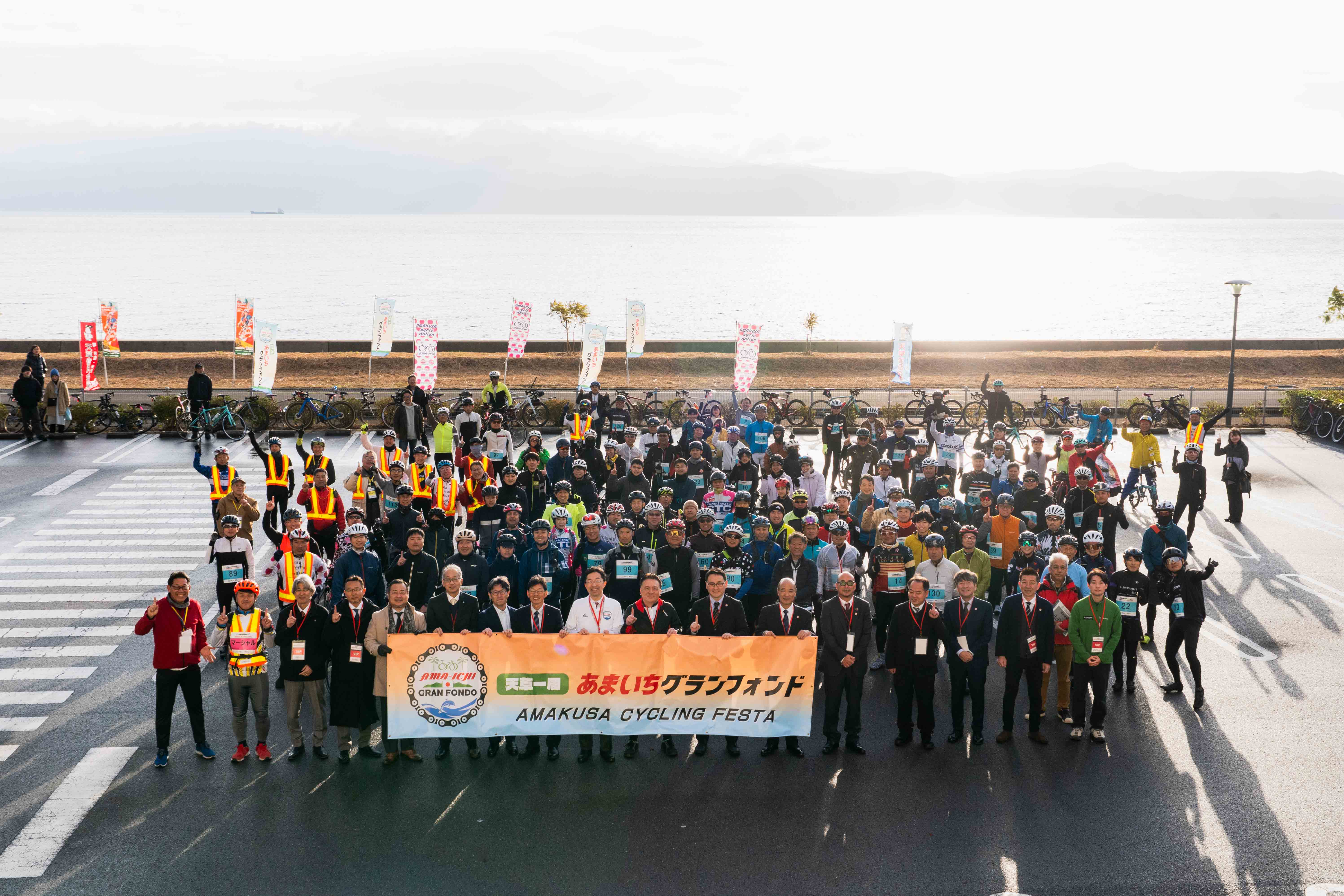 マーシャルは3名と多いものの、特別ゲストの植田さんや上天草市長に各1名ずつ張り付くとのことなので集団のペーシングは実質1人、レース前よりよほど緊張(^_^;)