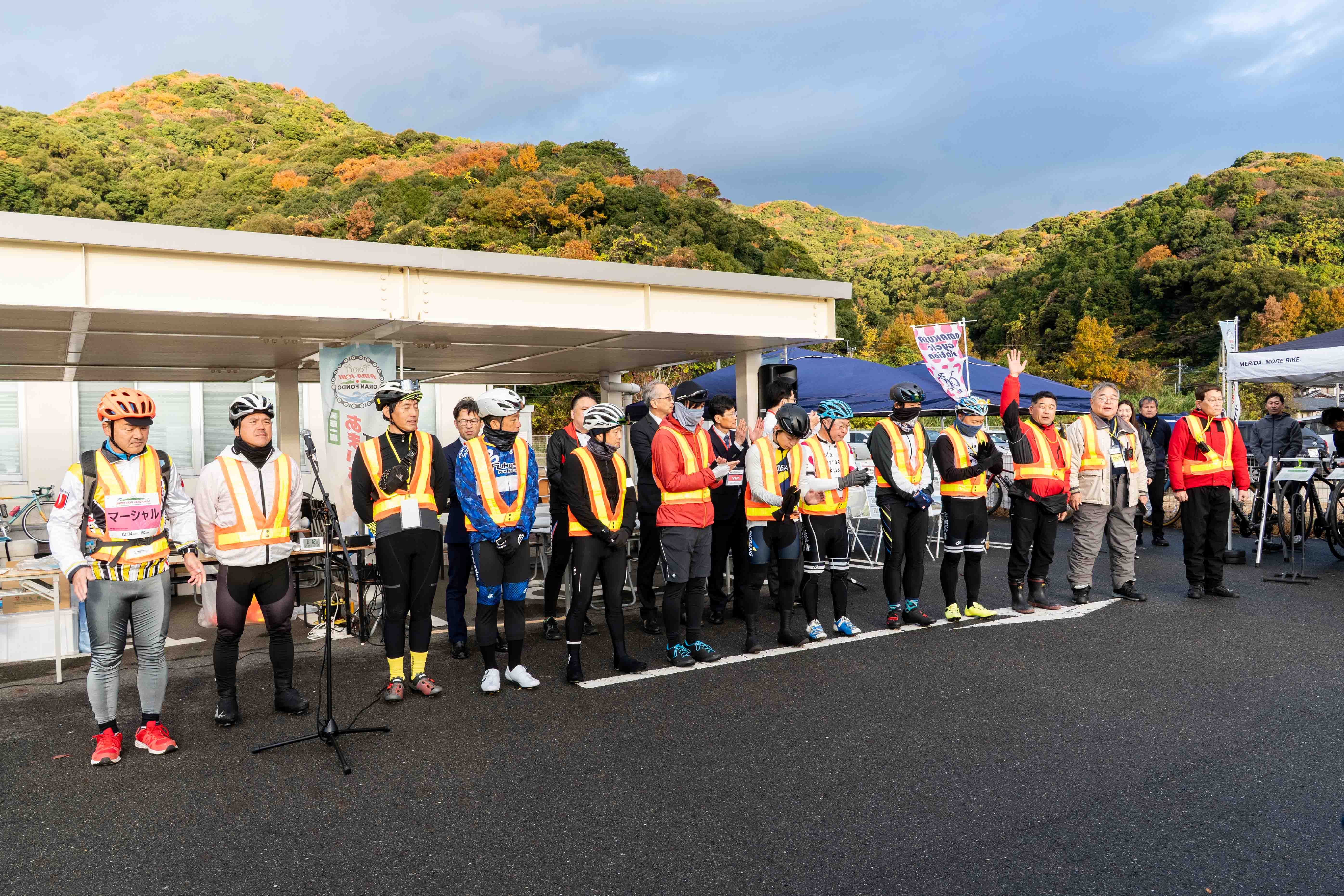同じマーシャルや先導バイクのスタッフとのブリーフィングも行い、スタート前の開会式では紹介も頂きました!